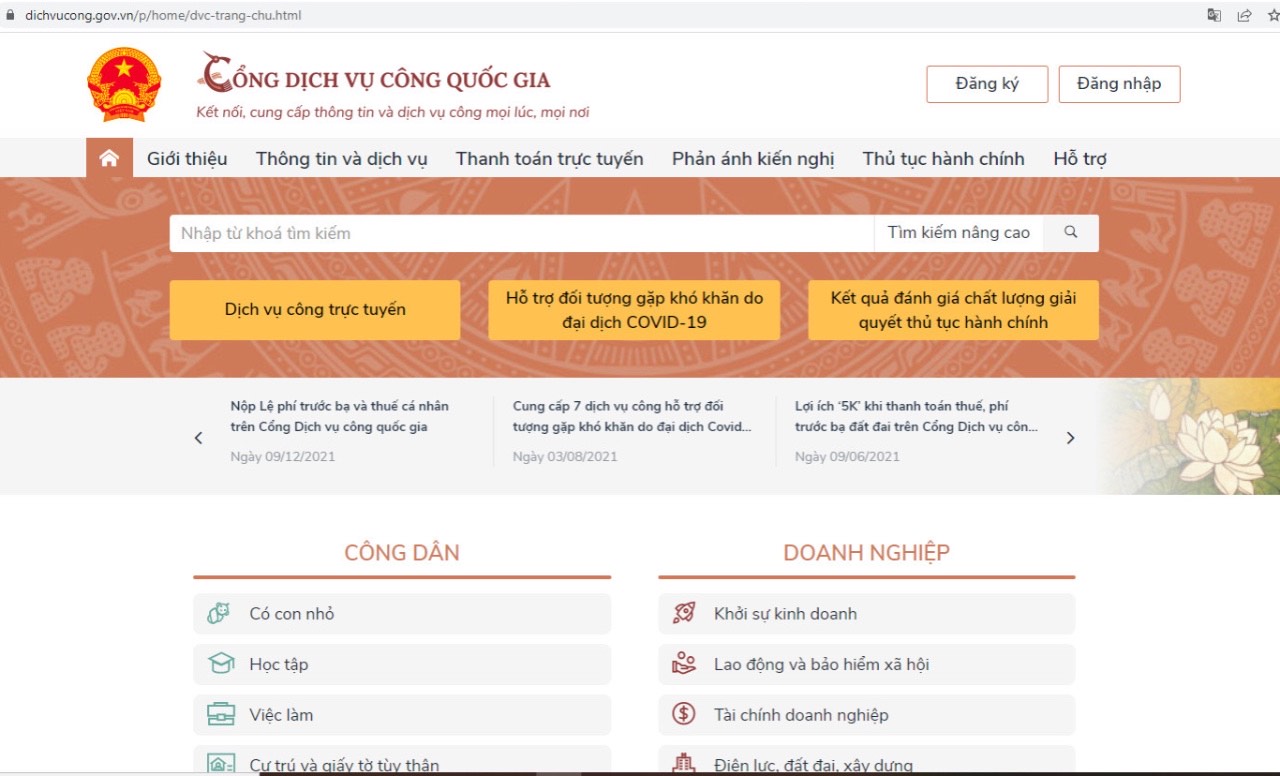 vụ công trực tuyến cần sớm được tích hợp, cung cấp trên Cổng Dịch vụ công quốc