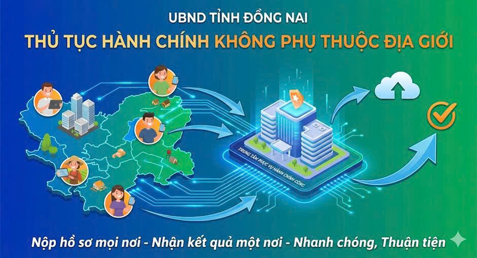 Ủy ban nhân dân tỉnh Đồng Nai đã ban hành Quyết định số 3304/QĐ-UBND ngày 25/12/2025 về việc triển khai thực hiện thủ tục hành chính không phụ thuộc vào địa giới hành chính trên địa bàn tỉnh, nhằm tiếp tục đẩy mạnh cải cách thủ tục hành chính, tạo thuận lợi tối đa cho người dân và doanh nghiệp trong quá trình thực hiện thủ tục hành chính.